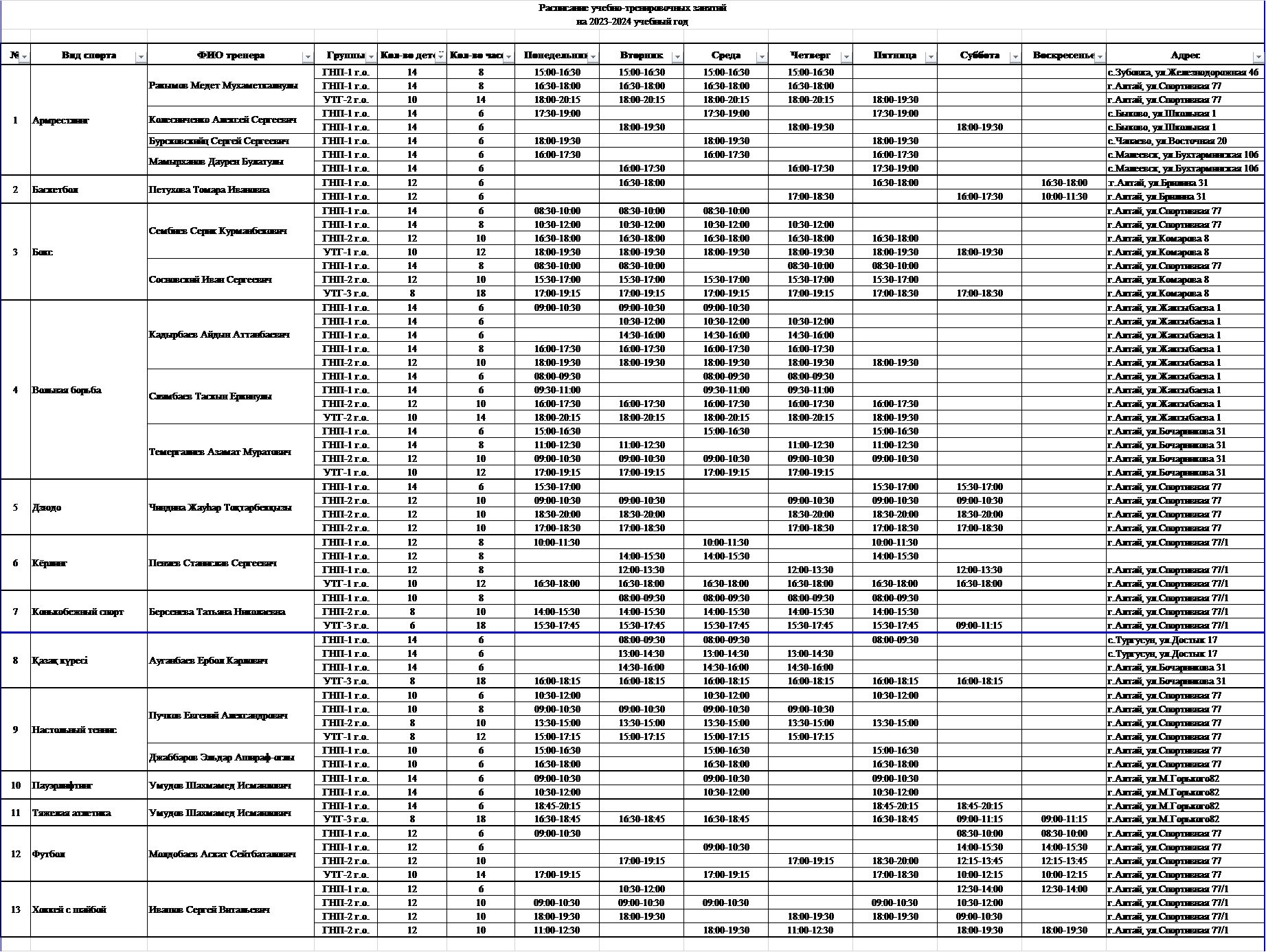 КГУ «Детско-юношеская спортивная школа города Алтай» управления физической культуры и спорта Восточно-Казахстанской области